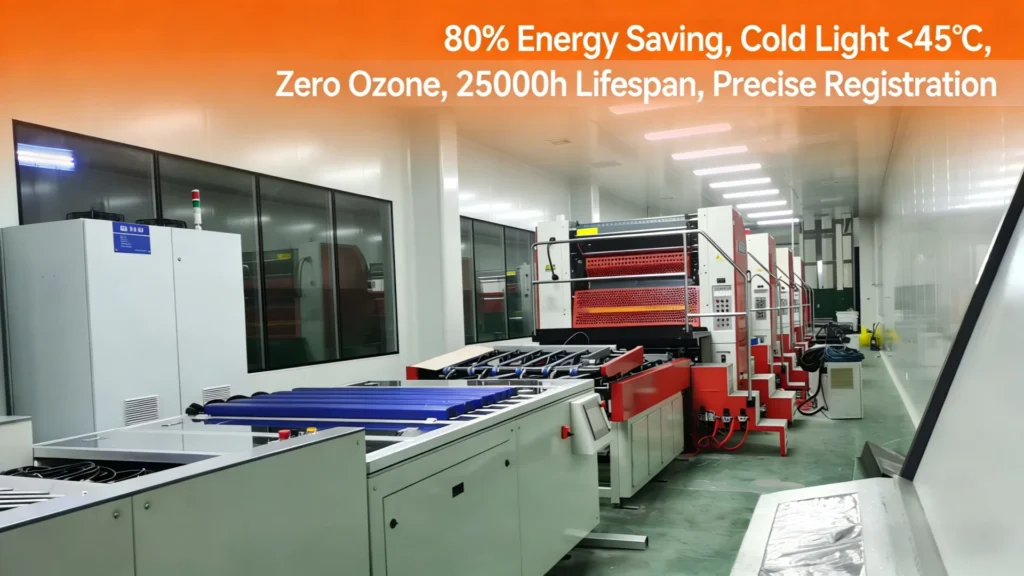 • JP LED UV Curing Systems:Engineered with premium Seoul or LG LED chips, these systems offer an eco-friendly, mercury-free footprint. They generate zero ozone and minimal heat, achieving up to 75% energy savings with an industry-leading operational lifespan exceeding 25,000 hours.