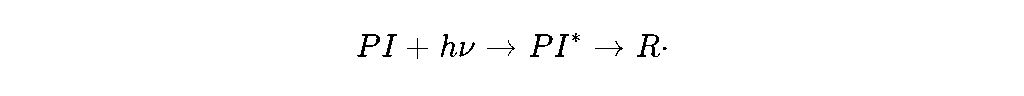 This reaction can be shown with this simple logic. is the photoinitiator, is light energy, and is the monomer: